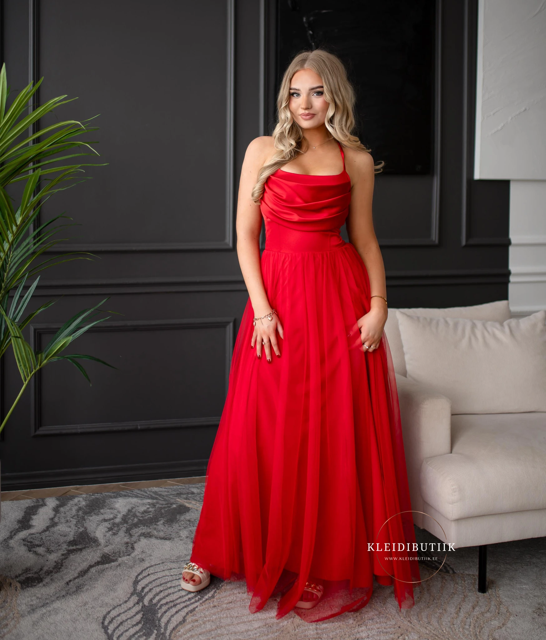 Punane tüllmaksikleit VEGAS (XS-M)