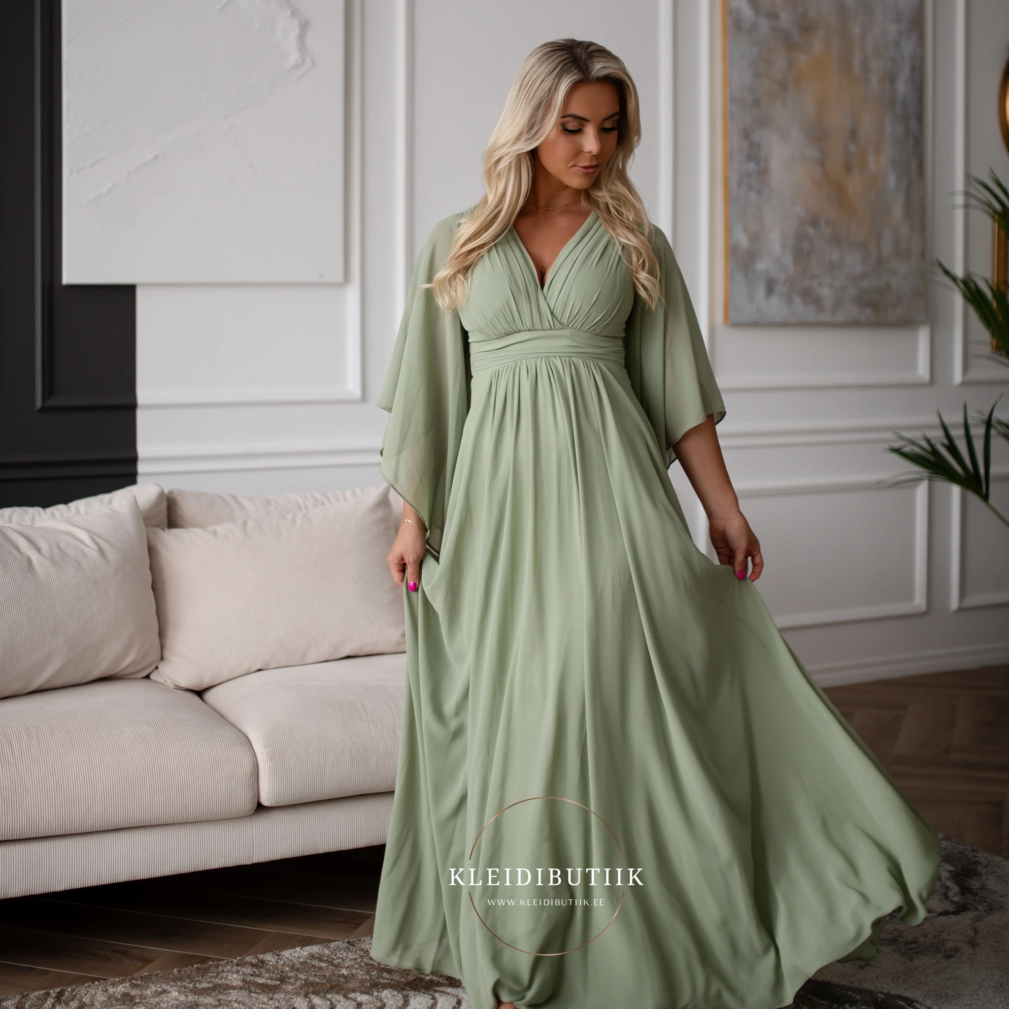 Modell on 171cm pikk ja kannab S-suuruses kleiti.
