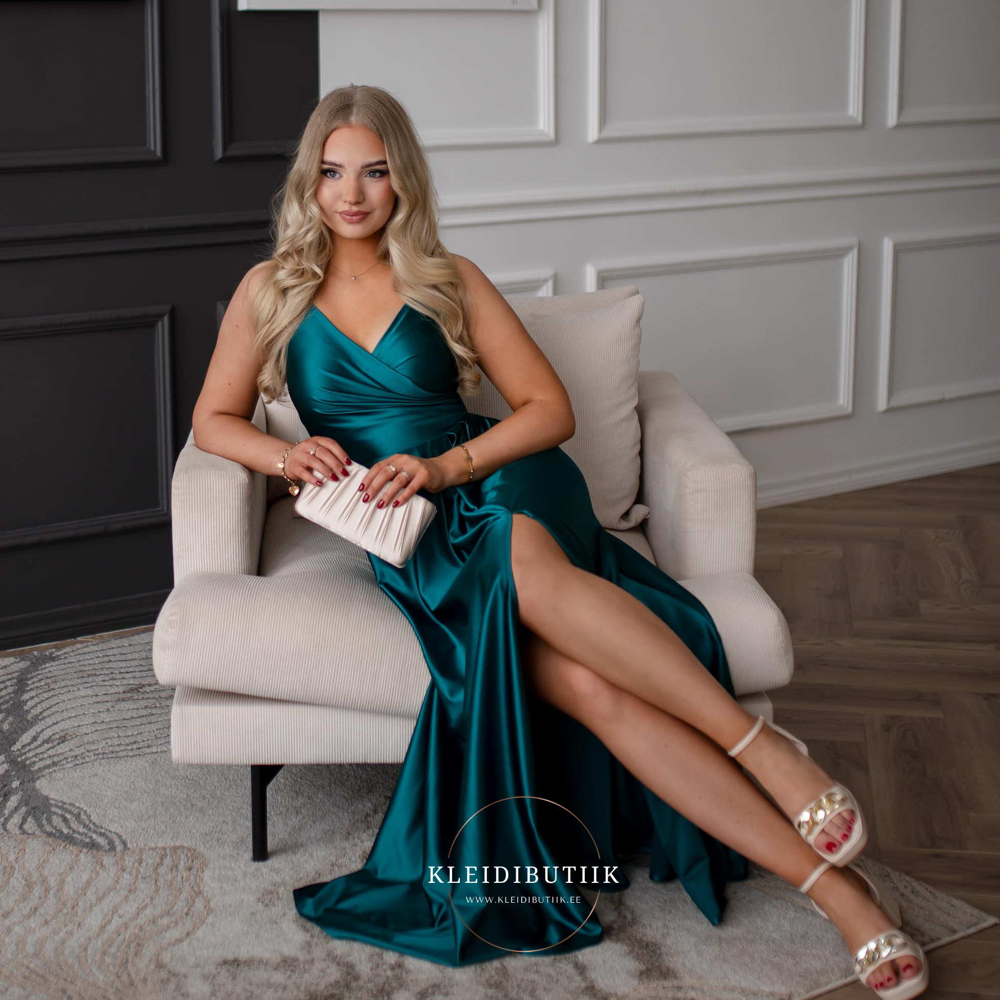 Modell on 171cm pikk ja kannab S-suuruses kleiti (jalas on umbes 9cm kontsaga kingad)
