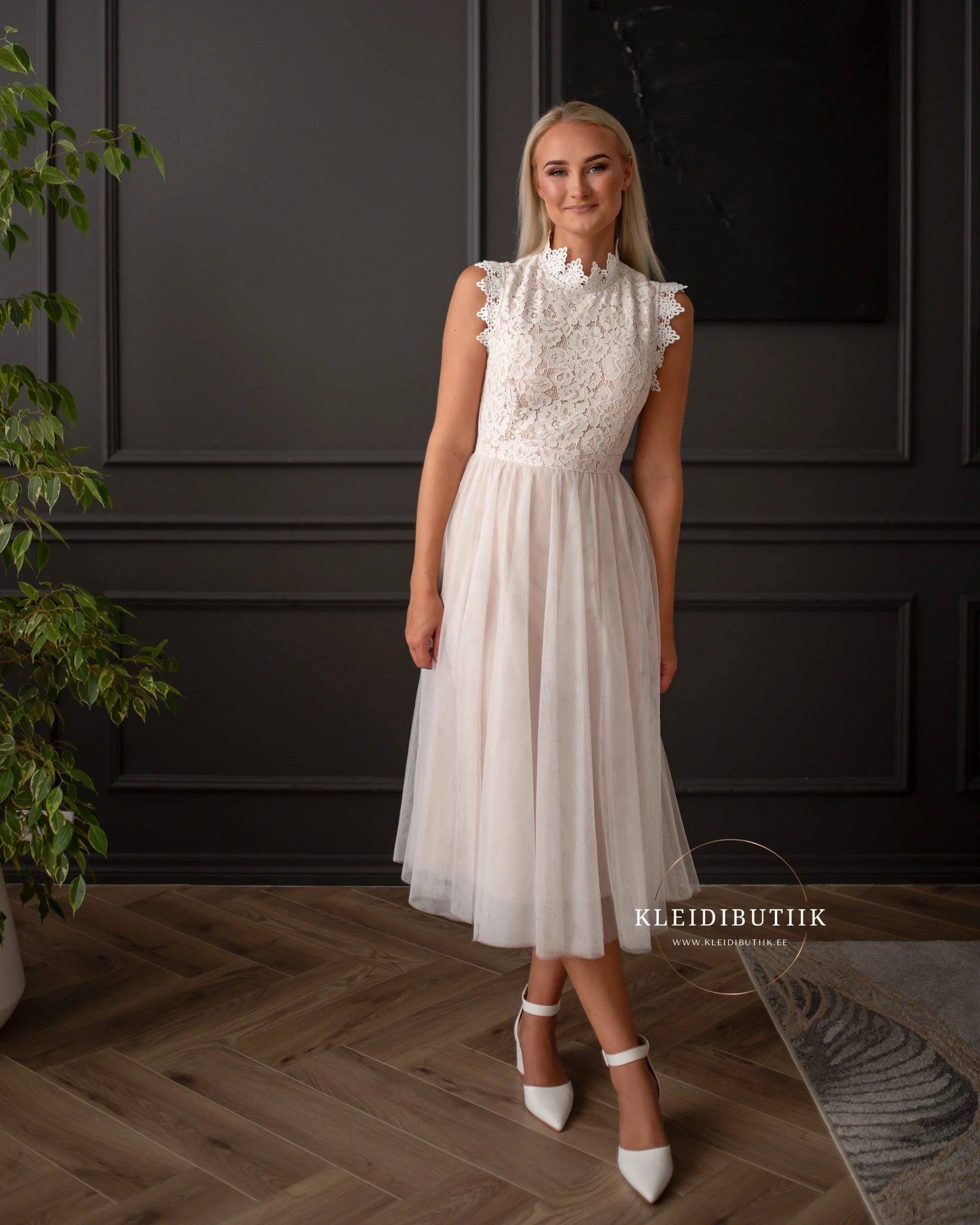 ♡ aluskangas on beeźikas, pealmine kangas on valge. Seelikuosa pealmine kangas on lendlev kerge tüll, ülaosa katab pits.
